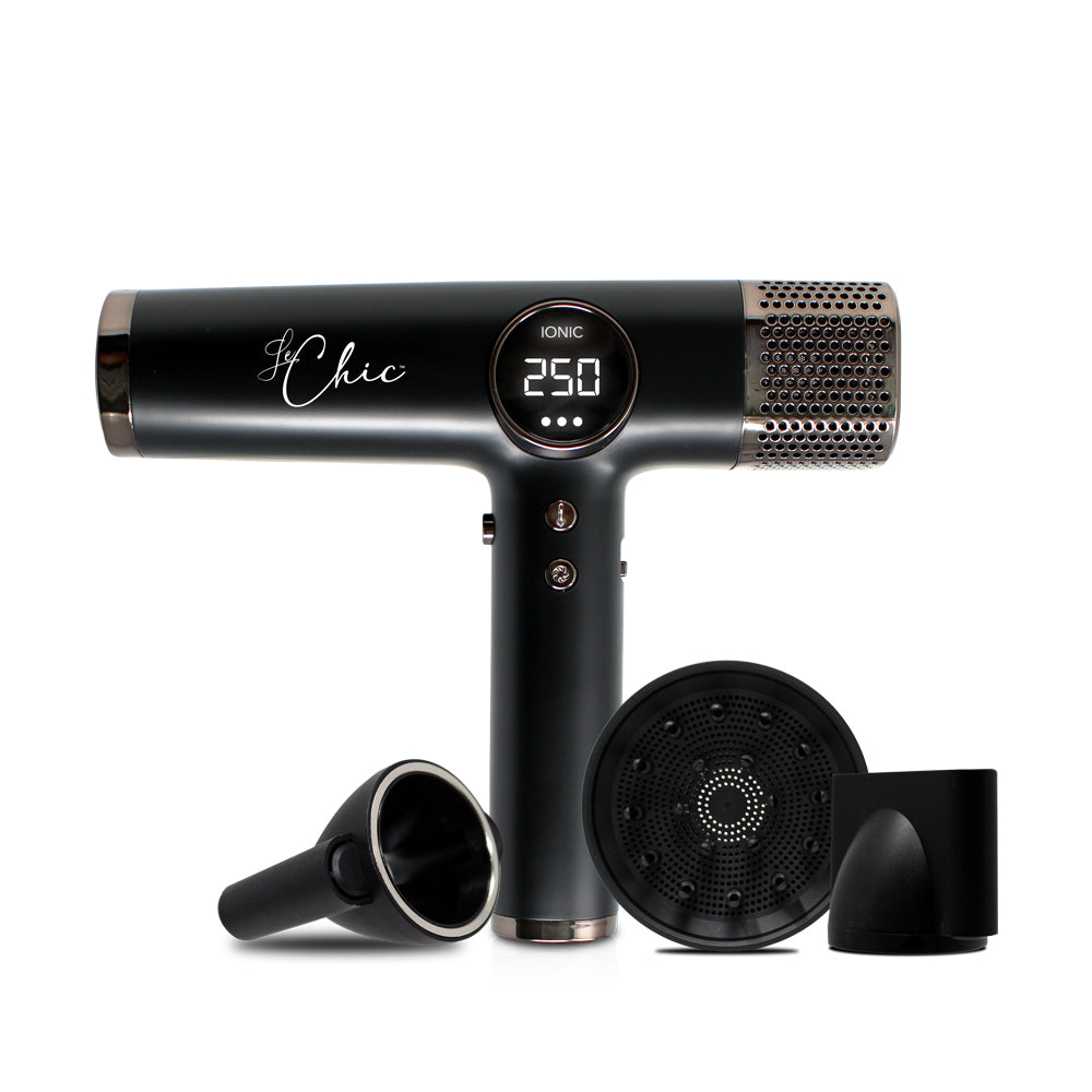 Step into the boutique and prepare to be marveled by the Zephyr Salon Turbo Ionic Blow Dryer. Crafted with you in mind, this new age wonder features a Digital Intelligent Temperature Display with three heat and speed settings, a supercharged Ionic Generator, and 3 styling attachments that magnetically snap on, all to give you a smooth style that lasts all day. A necessity for any hair connoisseur.